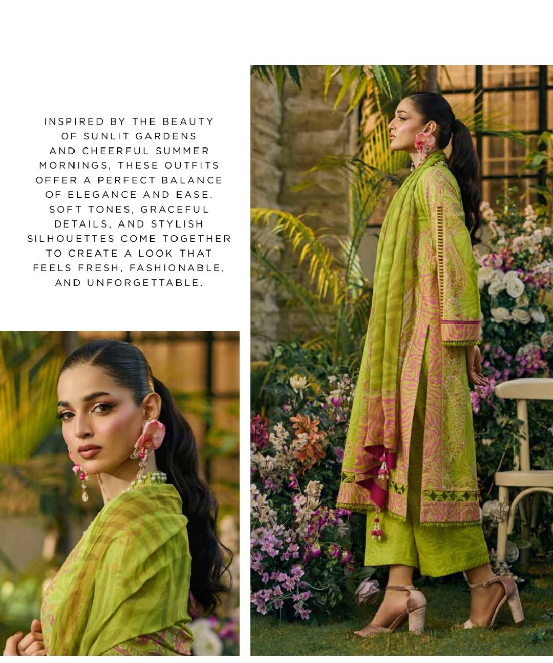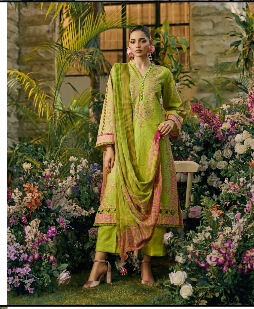 A premium printed lawn collection paired with a beautifully designed printed chiffon dupatta, specially crafted for the summer season. This collection features a perfect blend of soft tones, vibrant prints, and breathable fabric, offering both comfort and effortless style—ideal for casual wear as well as festive gatherings.