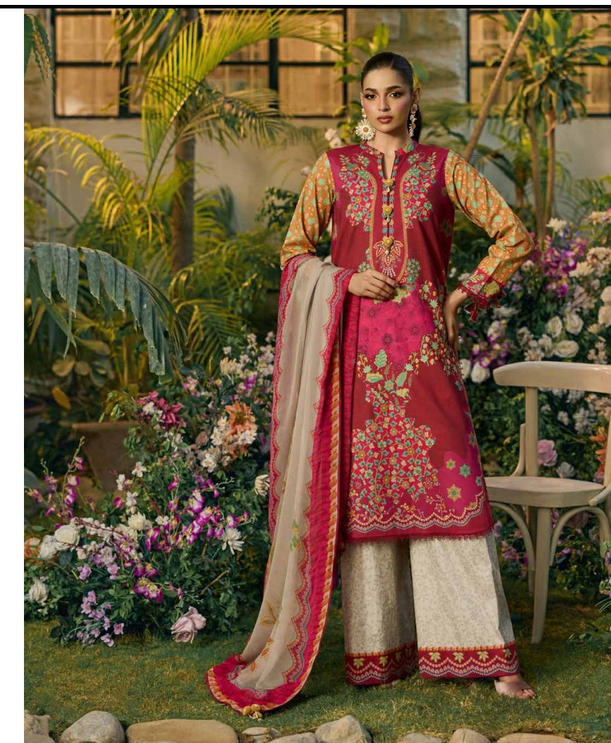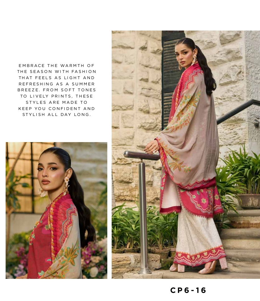 A premium printed lawn collection paired with a beautifully designed printed chiffon dupatta, specially crafted for the summer season. This collection features a perfect blend of soft tones, vibrant prints, and breathable fabric, offering both comfort and effortless style—ideal for casual wear as well as festive gatherings.