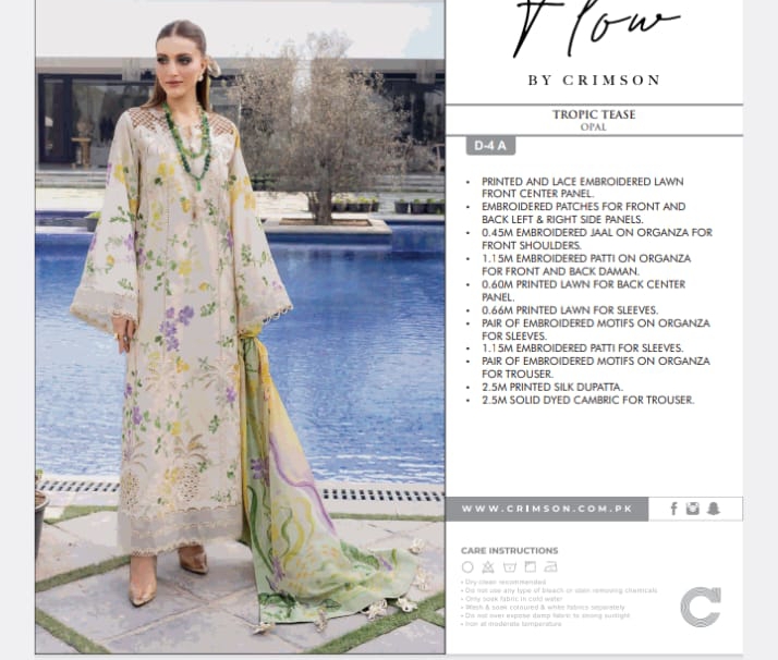 Brighten your summer wardrobe with this elegant Crimson Flow 3-piece suit in a refreshing sunset orange tone. The outfit features a beautifully printed and embroidered shirt with delicate cutwork details, paired with an organza embroidered neckline and sleeves for a graceful look. It comes with a soft printed striped silk dupatta and a comfortable cambric trouser, making it perfect for festive gatherings and summer events. Stylish, lightweight, and effortlessly classy.