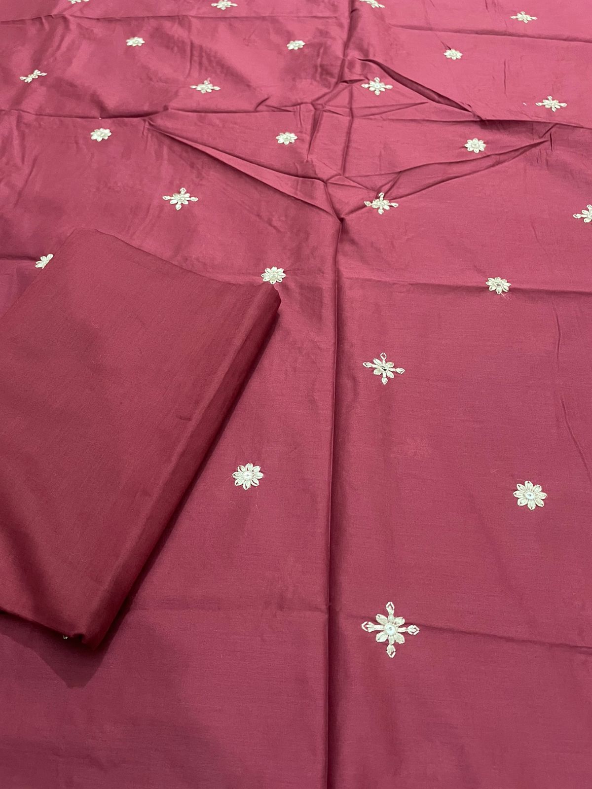 Elegant 2-piece outfit featuring delicate cross-stitch embroidery that adds a classic handcrafted charm. Made with comfortable fabric, the set includes a beautifully embroidered shirt paired with a matching trouser, perfect for casual wear and semi-formal occasions. Stylish, breathable, and timeless in design. ✨