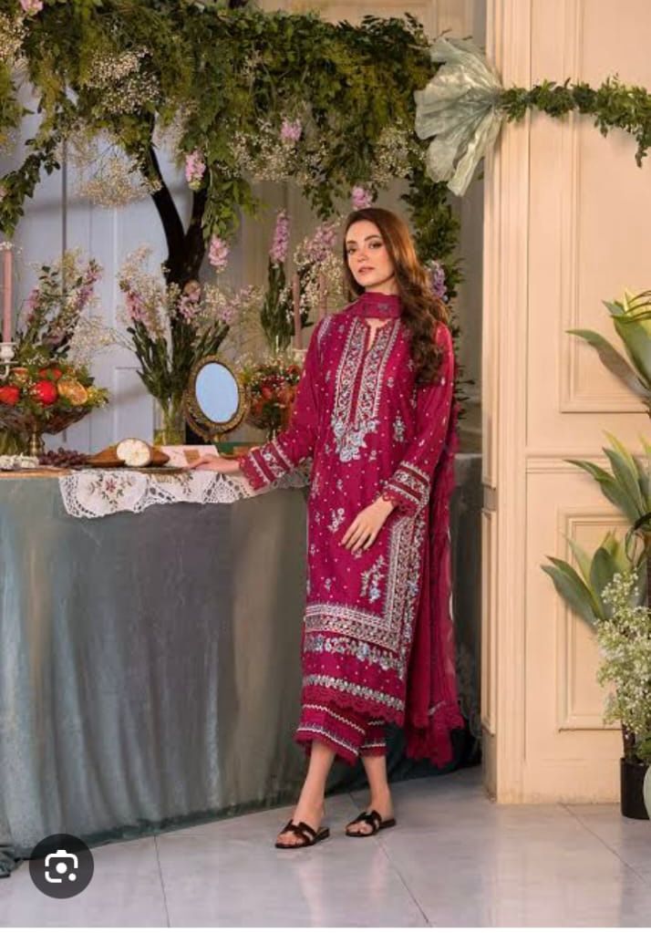 Elegant 2-piece lawn suit featuring fine embroidery on a premium lawn shirt, paired with a matching trouser. Lightweight, breathable fabric with graceful detailing—perfect for summer wear and casual gatherings.